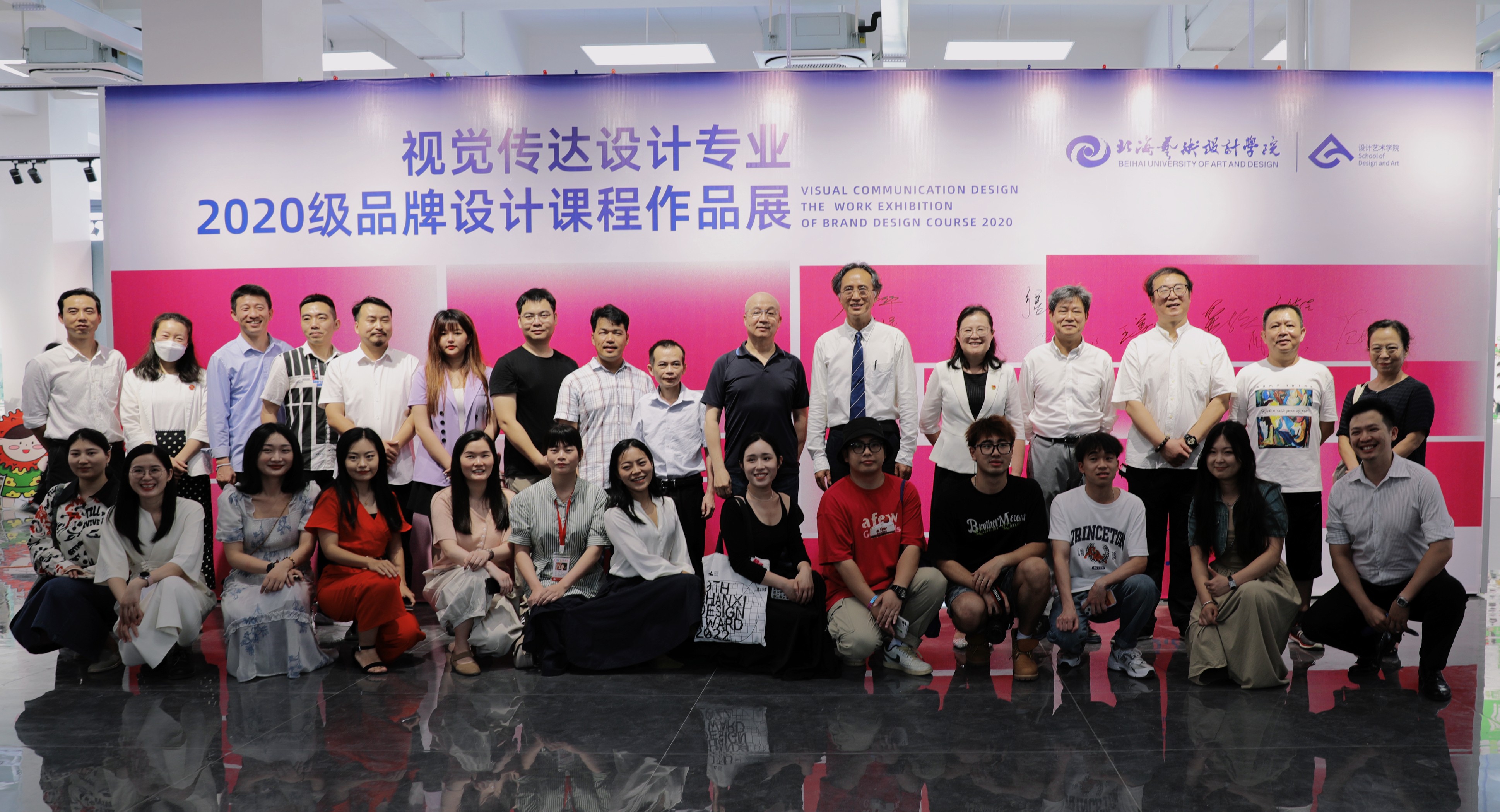 草长莺飞,鸟语花香,2023年5月6日上午,设计艺术学院2020级视觉传达设计专业品牌设计课程作品展在艺德楼8楼开展。出席本次展览开幕式的领导和嘉宾有学校党委书记张阳、校长卢新华,学院书记黄锦、院长李林平、副院长白建强、副院长李佩以及傅颖哲、范娅兰、侯林、龚东庆、王善民等教授,此外,北远见传媒集团、北海市广告协会会长刘利平,北海银滩景区公司总经理助理闫俊天,北海市任逍遥旅游文化有限公司执行董事张广,京海传媒副总经理刘龙文应邀出席。