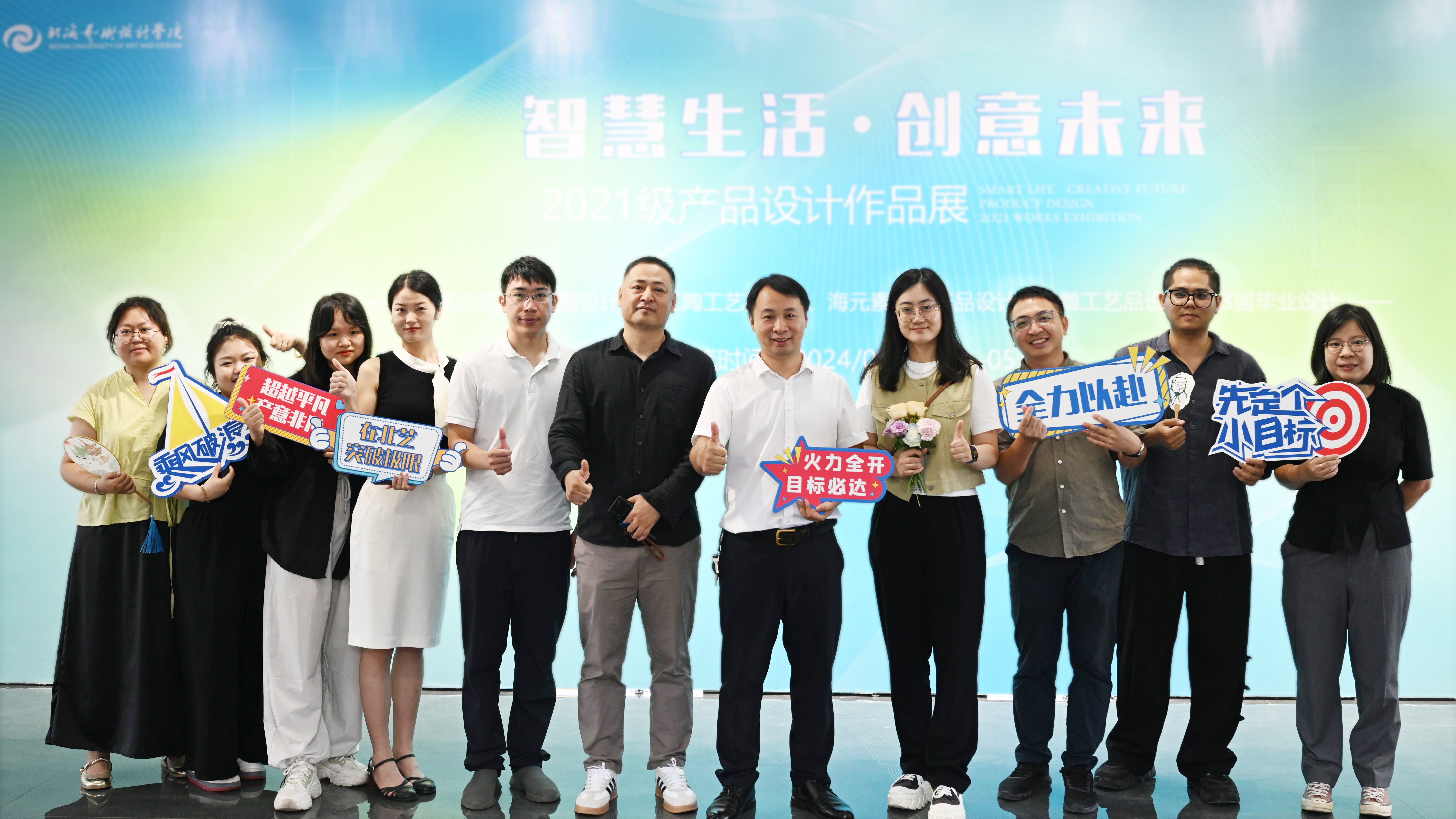 2024年5月27日上午,我院产品设计专业“智慧生活·创意未来——2021级产品设计作品展”在南校区艺德楼8楼北侧展厅拉开帷幕。此次展览集结了产品设计专业学生们的创新成果,吸引了众多嘉宾的关注和参与。校长卢新华、中国工艺美术大师利成世、学院院长李林平、副院长白建强、贾荣建教授、北海市工业发展促进中心工艺美术科科长钟志慧、广西工艺美术大师陈建炜、北海喜蛙家居设计有限公司总经理何一夫及产品设计专业师生们共同出席了开幕式。开幕式活动由产品设计专业教师陈书娟主持。