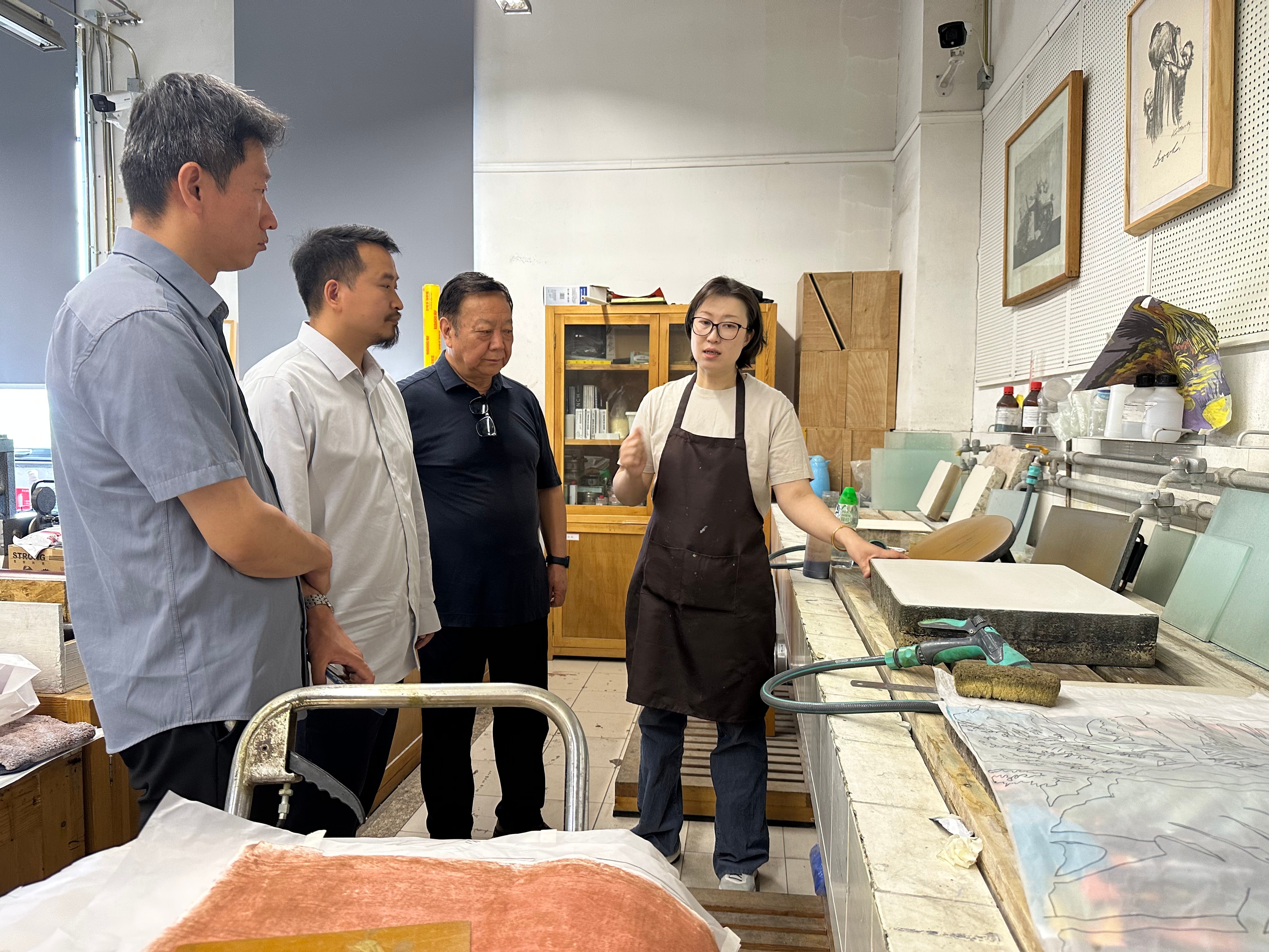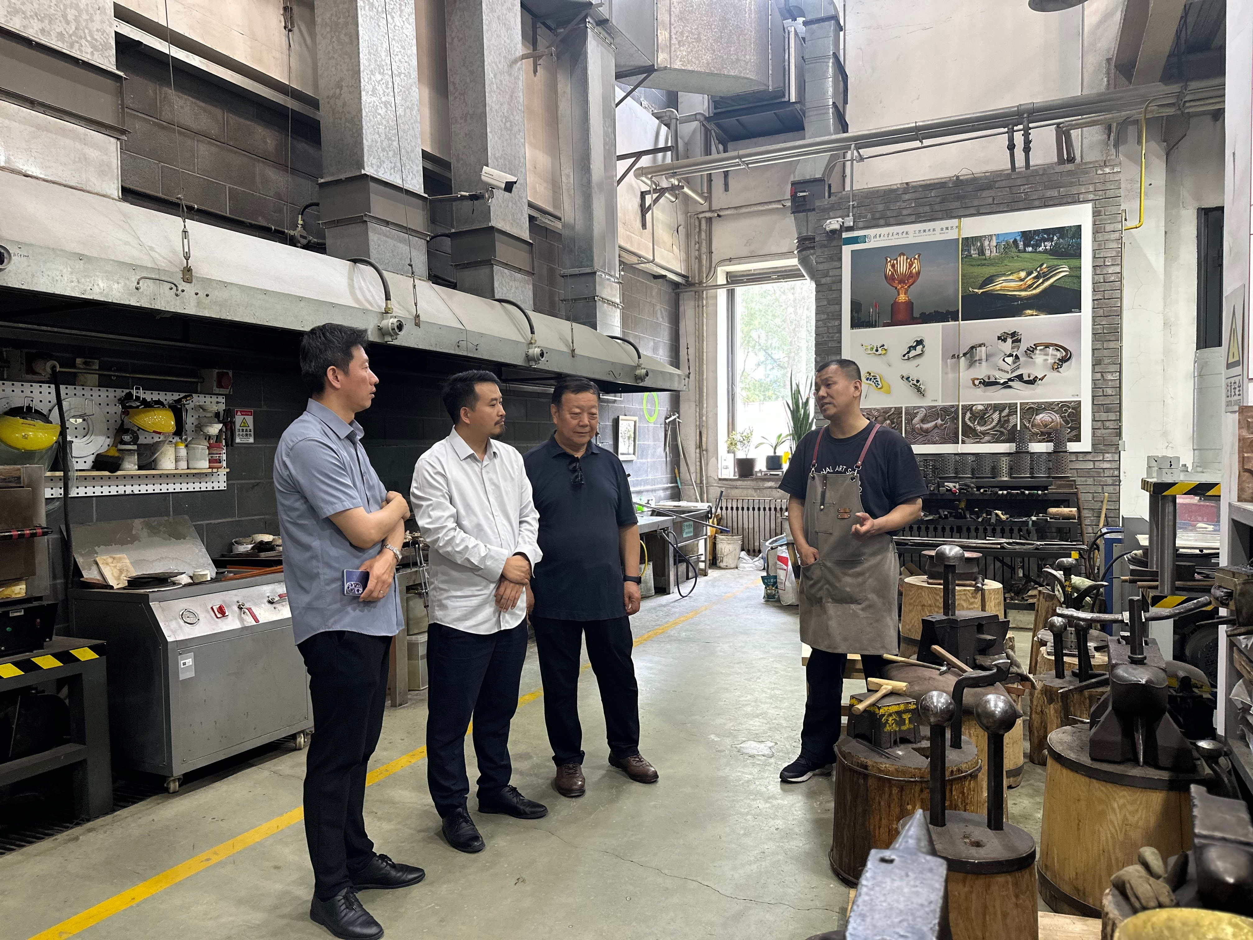调研组首站赴清华大学美术学院实地考察。在张夫也教授的带领下,调研组深入参观了视觉传达设计实验室、首饰工艺实验室、版画工艺实验室、印染工艺实验室、纸张艺术实验室、陶瓷艺术与设计实验室、金属工艺实验室7个实验室其先进的设备、科学的布局和高效的运行模式,为学院智能设计实验室建设及应用型艺术设计人才培养提供了重要参考借鉴