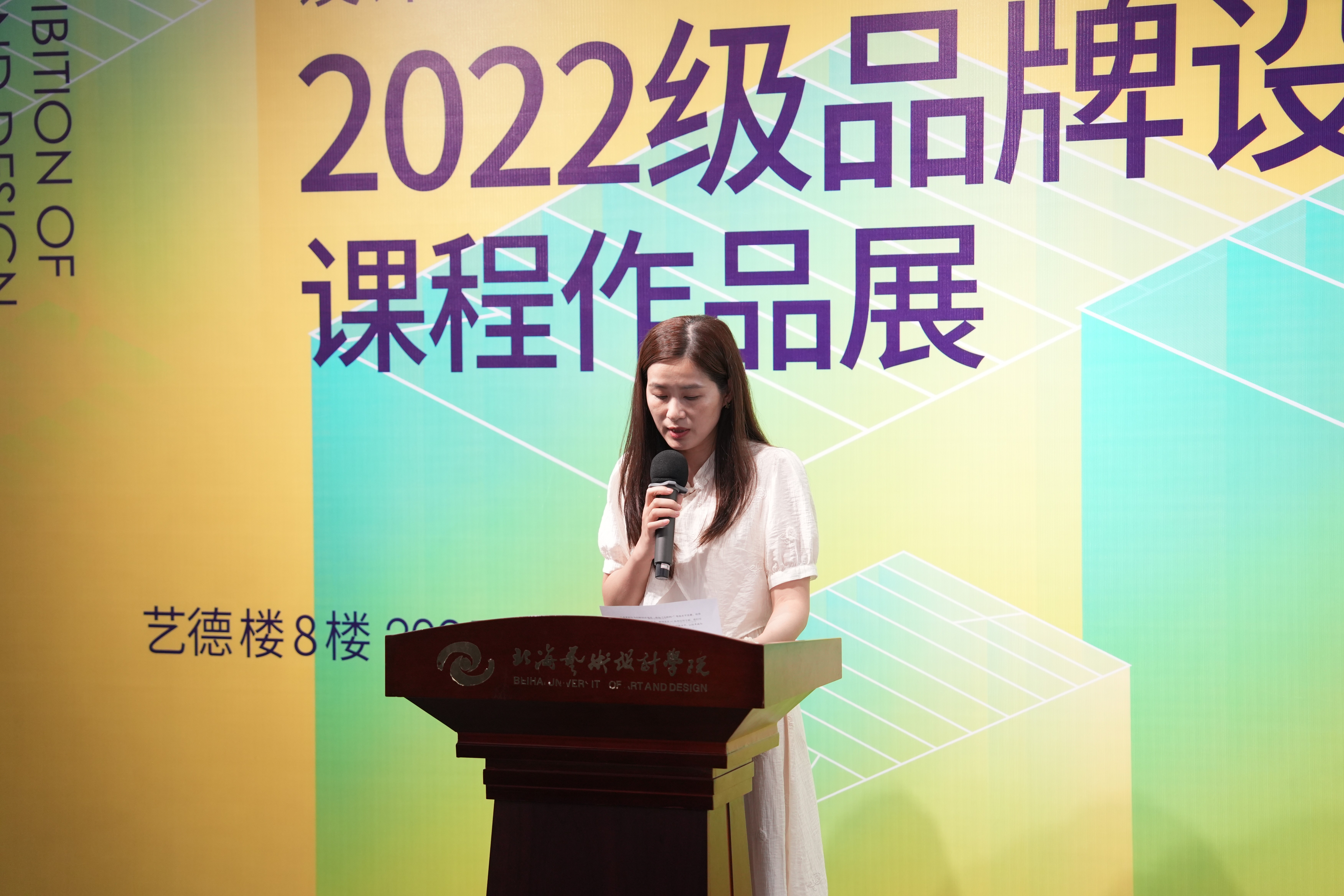 校党委书记覃宪儒宣布设计艺术学院2022级品牌设计课程作品展正式开幕”现场掌声雷动,展览正式拉开帷幕