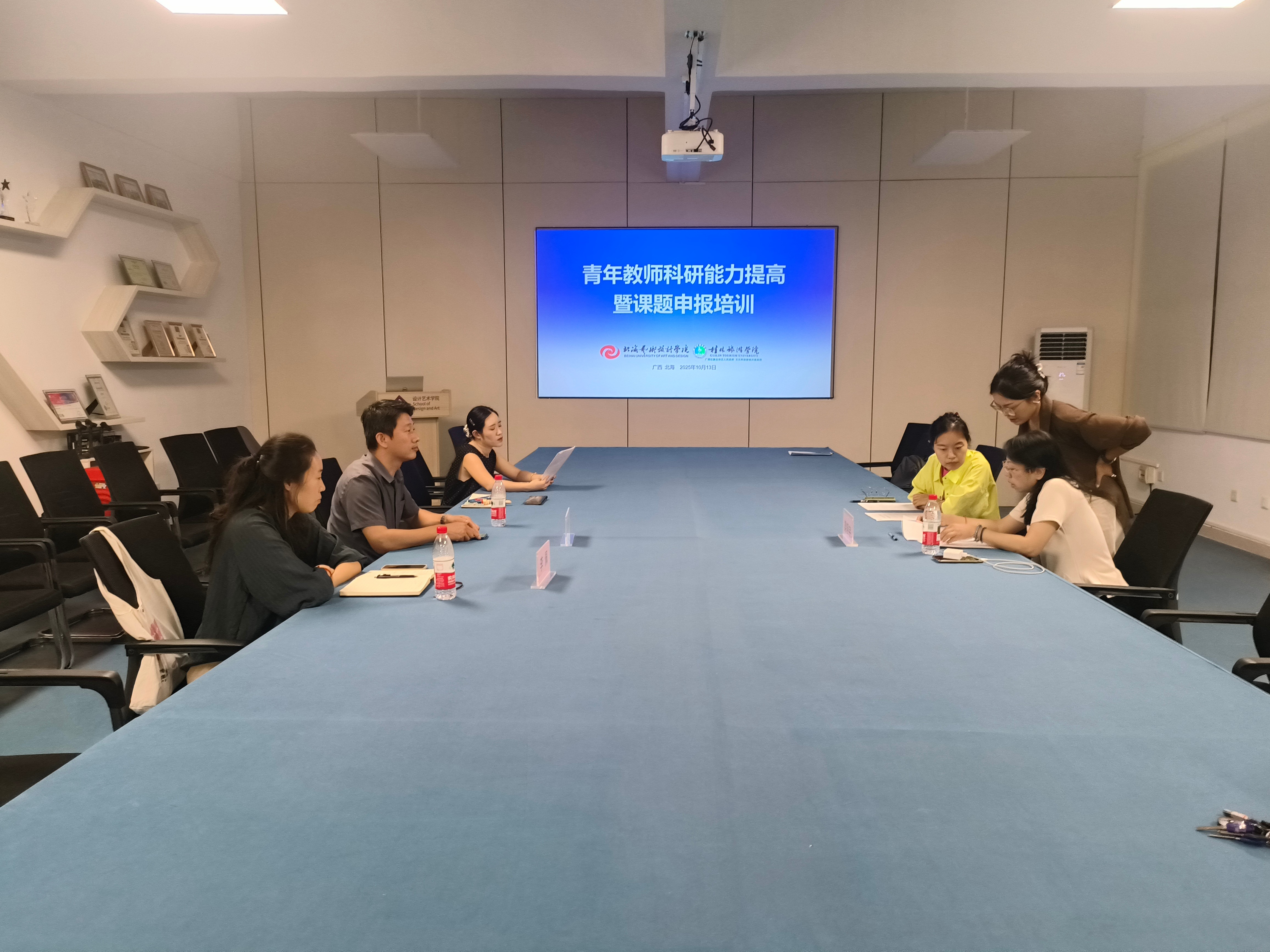 近日,“传承非遗·创新海丝”文化创意教学研究团队邀请桂林旅游学院梁晓宇副教授为青年教师开展关于科研项目申报的培训活动,培训由团队负责人设计艺术学院副院长白建强主持,李佩副院长及团队成员出席。