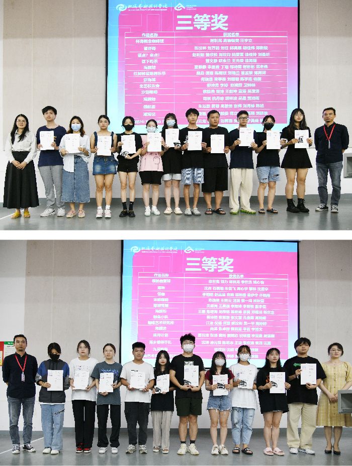 本次大赛通过学院与企业、教师与企业家、课堂与工厂、选题与项目、作业与作品、作品与商品等多维融合开展教学实践活动,并围绕校企合作实践项目、向海经济旅游项目等选题方向进行设计探索和设计实践。实行产教结合,使教学培养目标与企业发展要求相一致,让同学们“真学业务、真练技能”,提升同学们的设计理论水平和项目实操能力,实现学校、企业、学生三方“共赢”,本次典礼,共颁发了79组获奖作品。