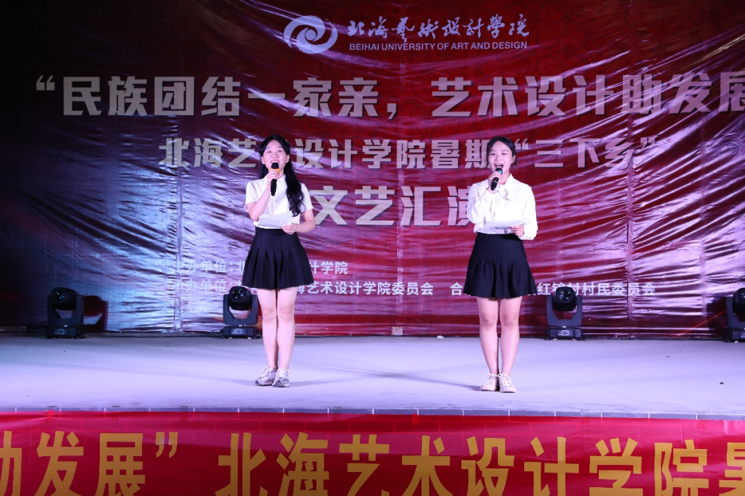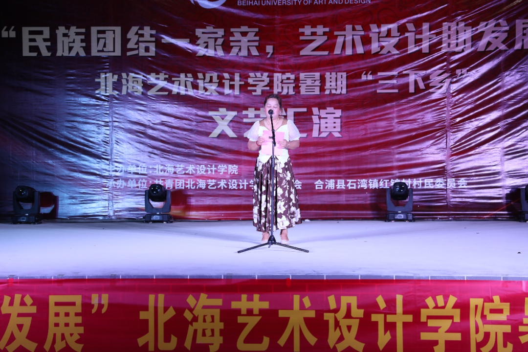 6月17日晚上,北海艺术设计学院“民族团结一家亲,艺术设计助发展”暑期“三下乡”文艺汇演在红锦村村委委员会顺利举行。