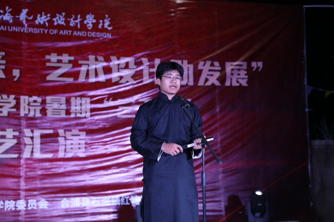 表演开始前,由红锦村党支部书记赖凤声发表致辞,她首先对北海艺术设计学院师生们的到来表示了欢迎。她提到,会将此次活动为新契机、新起点,加强沟通,加强交流,真诚合作,共同促进红锦村文化教育以及乡村建设事业的蓬勃发展,最后她希望广大师生能够继续支持红锦村的发展,继续关注红锦村的文化教育事业,继续给予更大的关怀与帮助。
