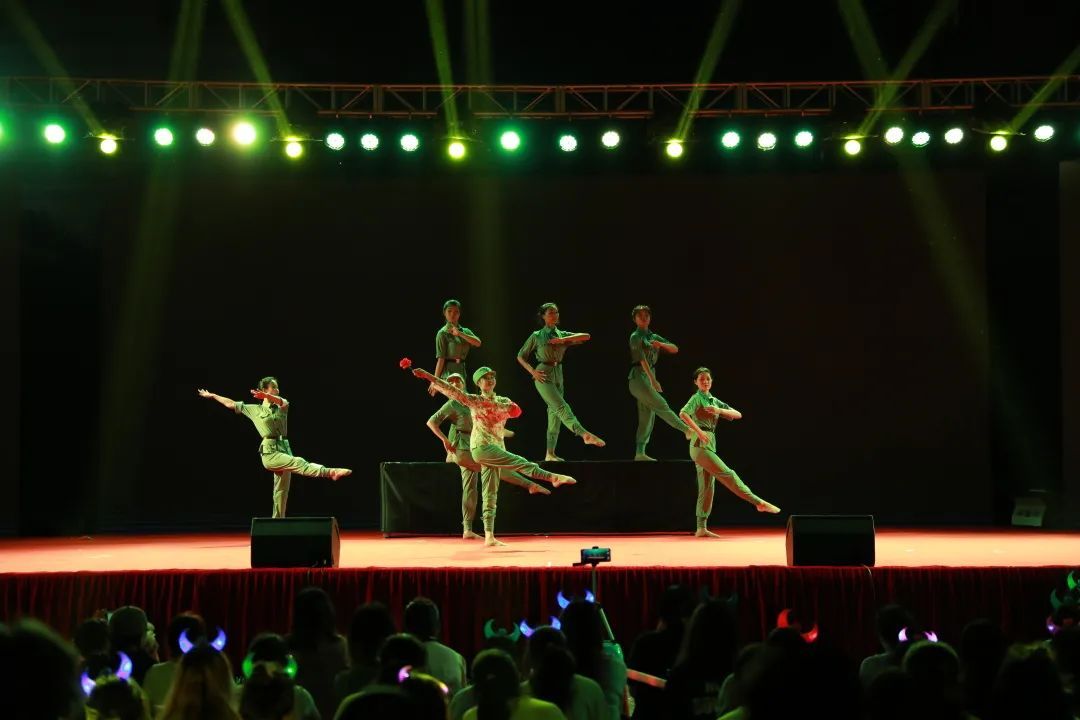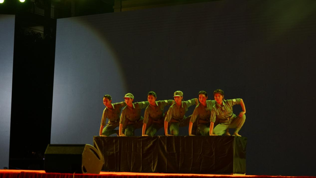 不忘初心、牢记使命是为中华人民谋幸福,为中华民族谋复兴。呼吁永远把人民对美好生活的向往作为奋斗目标,以永不懈怠的精神状态和一往无前的奋斗姿态,继续朝着实现中华民族伟大复兴的宏伟目标前进。由舞表1902班项铭会、蔡艺文等同学表演的《八女投江》,用柔美的舞姿展现了东北抗日联军8名女战士,在抗击日本侵略军的战斗中弹尽援绝,为国捐躯的英雄气概。