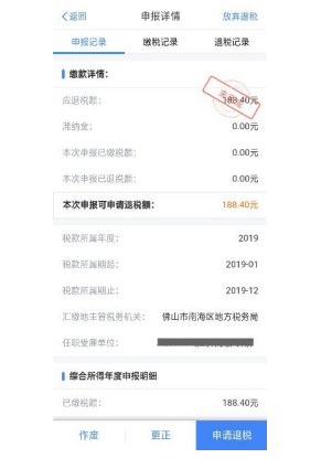 (一)核对个人基础信息、汇缴地、查看收入明细数据, 确认已缴税额。