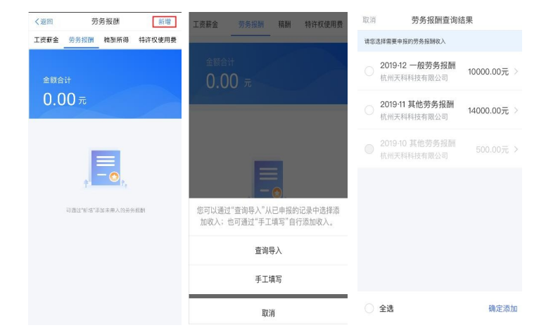 系统将自动归集您在纳税年度的收入纳税数据[工资薪 金、劳务报酬(保险营销员、证券经纪人)、特许权使用费所得],并直接预填至相应申报栏次。其他劳务报酬和稿酬 所得的填报,见本场景填报方式 1 第三步中的【新增劳务报或稿酬】。