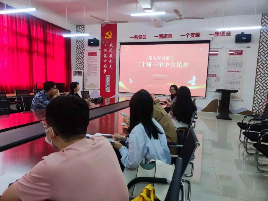 为深入学习贯彻党的二十届三中全会精神9月23日,文学院党支部于德楼204开展了党的二十届三中全会精神专题党课学习。此次党课学习主要由支部书记岳莹讲授,学院全体党员参与。