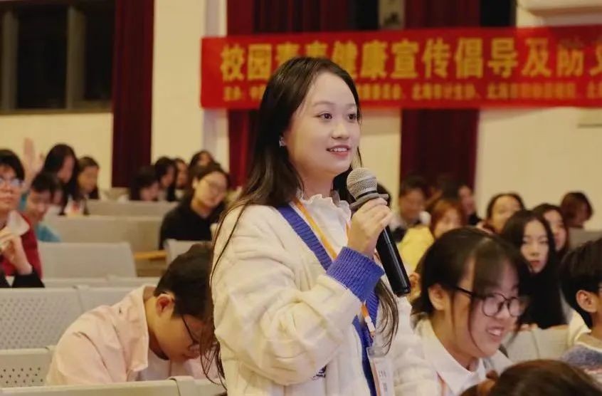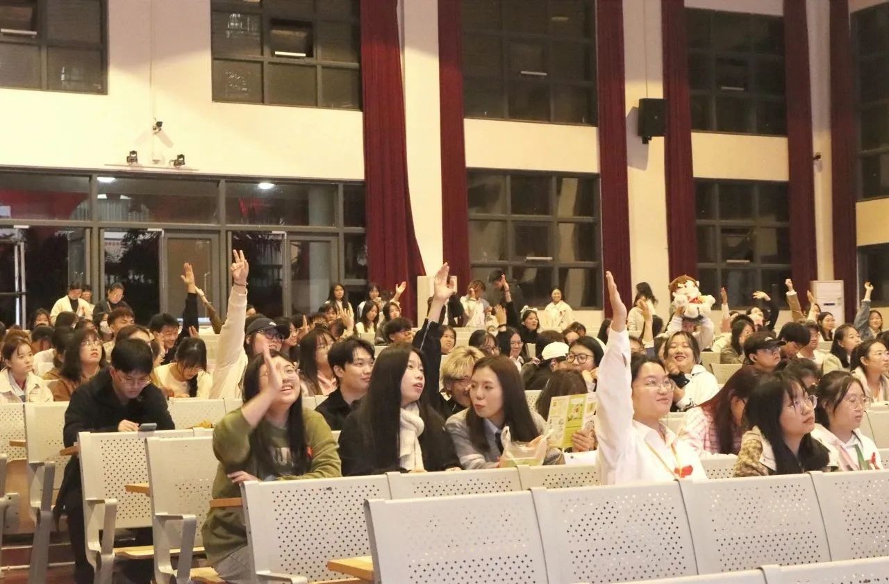 讲座结束后,由主持人带领大家进行防艾知识“有奖竞猜”环节并且开展了同伴教育,同学们积极举手发言,参与的同时,加深了对本次讲座内容的印象。让防艾意识铭刻在心,领悟预防艾滋病的重要性,更有利于预防艾滋病传播。
