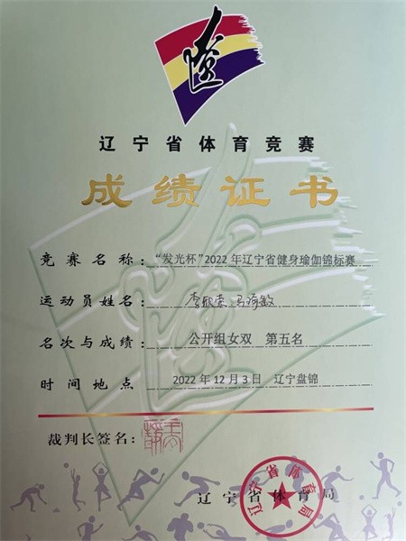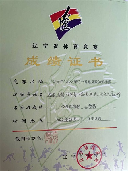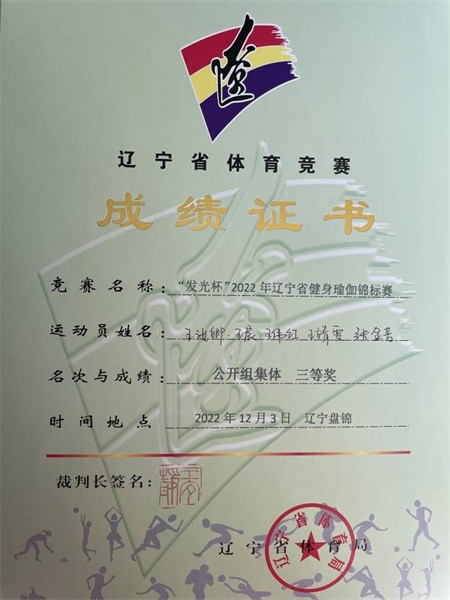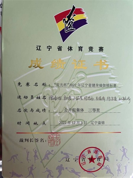 12月11日,由辽宁省体育总会主办的“发光杯”2022辽宁省健身瑜伽云端锦标赛圆满落幕。我校参赛队伍在通识教育学院罗敏、陈秋、蒙奎宇三位老师的指导下,斩获公开组女子双人第五名,公开组集体三等奖3项的优异成绩。