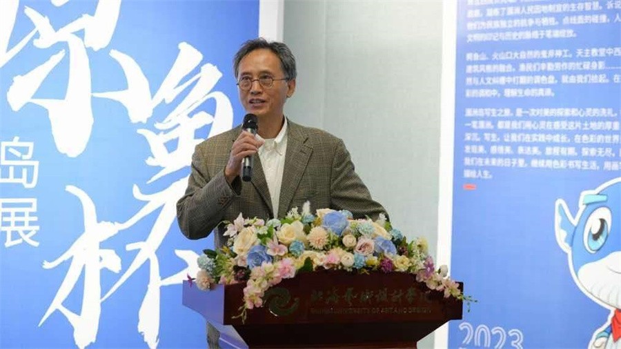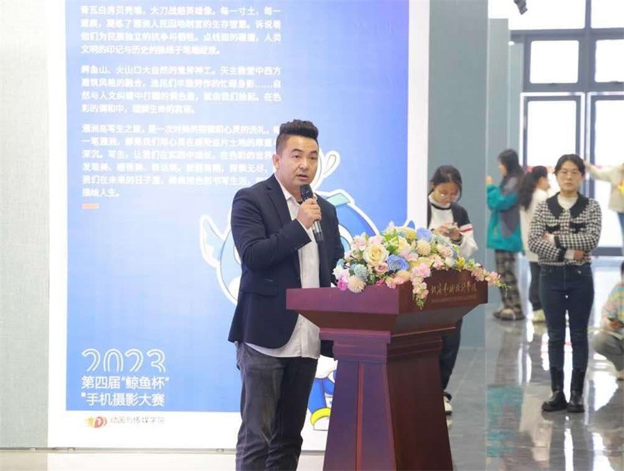 开幕式上,动画与传媒学院院长孙永辉致辞。他表示,“鲸鱼杯”涠洲岛手机摄影大赛是动画与传媒学院依托学校涠洲岛写生实践课程打造的文化赛事品牌。本届大赛自启动以来,共吸引了1000余名学生的积极参与,收到投稿逾2000件,是大赛迄今为止规模最大的一届。孙永辉院长认为,参赛学生和作品数量的增加不仅代表了活动影响力的扩大,更象征着动画与传媒学院依托海洋文化品牌建设理念,践行聚焦原创,文化传播,“四元五创”跨专业人才培养的框架下,立足动画、数字媒体艺术、播音与主持艺术三大专业,深化教育教学改革,积极鼓励学生们与文化产业紧密结合,实现理论与实践有机融合,激发学生跨界融合创新能力的具像化体现,是学生专业能力和艺术创造力的有力证明。