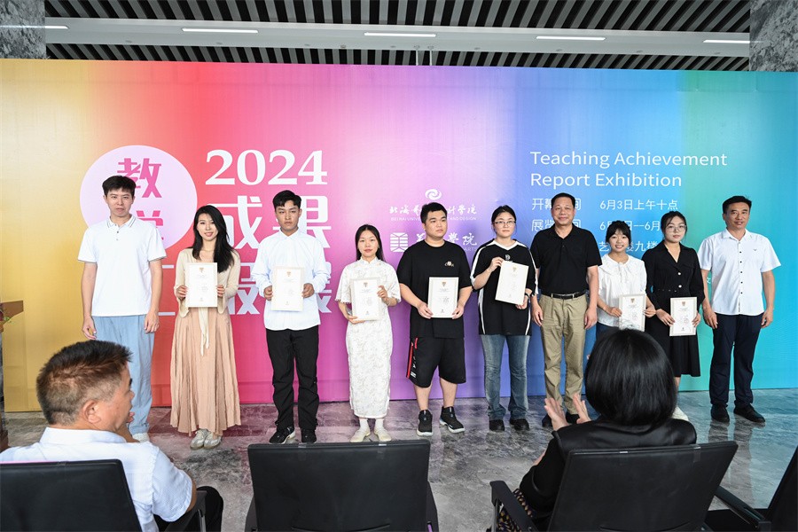 开幕式现场,到场领导及嘉宾为此次展览获奖学生现场颁奖。