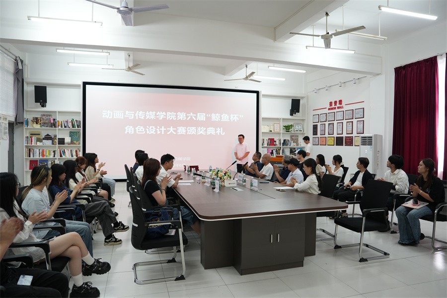 为加强学院文化建设,丰富和拓展学院文化内涵,经过近3个月的精心筹备,6月6日上午,动画与传媒学院第六届“鲸鱼杯”角色创意设计大赛迎来了颁奖仪式。动画与传媒学院党总支书记张帆,副院长杜博、刘涛,动画专业带头人王钢教授,资深教授廖大勇等30名师生参加颁奖仪式。