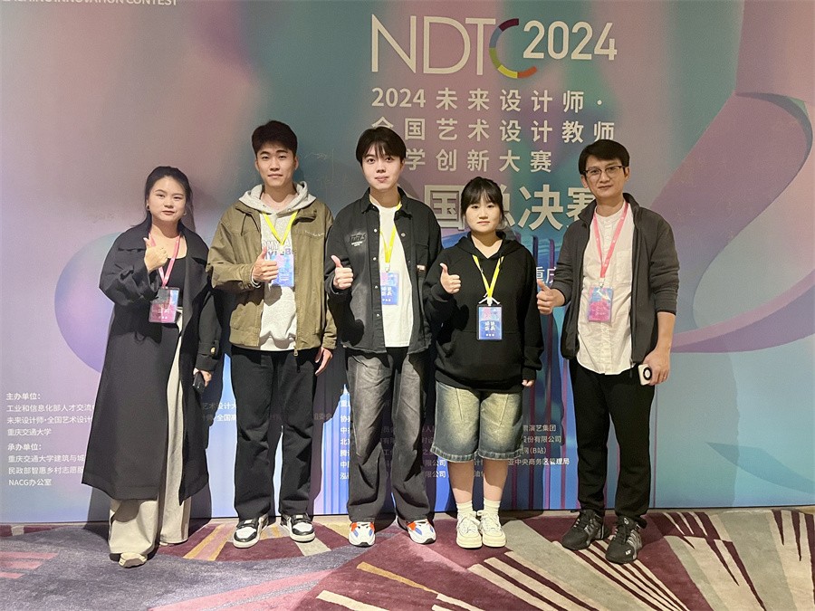 11月16日,第十二届“新质设计·创智未来”设计教育论坛暨2024未来设计师·全国高校数字艺术设计大赛(NCDA)及未来设计师·全国艺术设计教师教学创新大赛(NDTC)颁奖典礼在重庆两江云顶大酒店圆满落幕,我校动画与传媒学院凭借创新教学设计和卓越的教学成果,在此次大赛中脱颖而出,荣获多项荣誉。由吴锡红老师带领《游戏动画设计》教学团队荣获全国艺术设计教师教学创新大赛(NDTC)课程赛道全国一等奖;“‘鲸·界’《展示设计》课程融合实践”教学团队则获得案例赛道全国三等奖。动画与传媒学院2021级数字媒体专业学生张灵作为全国一等奖获奖学生代表,参加了本次颁奖典礼,并在典礼上代表我校上台领奖。