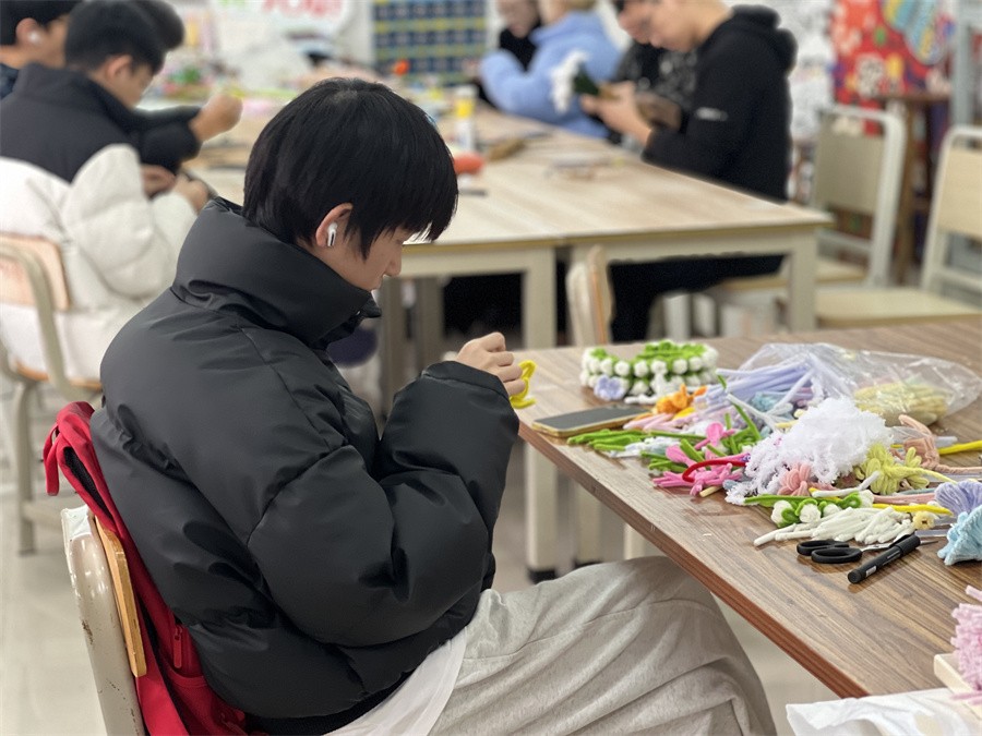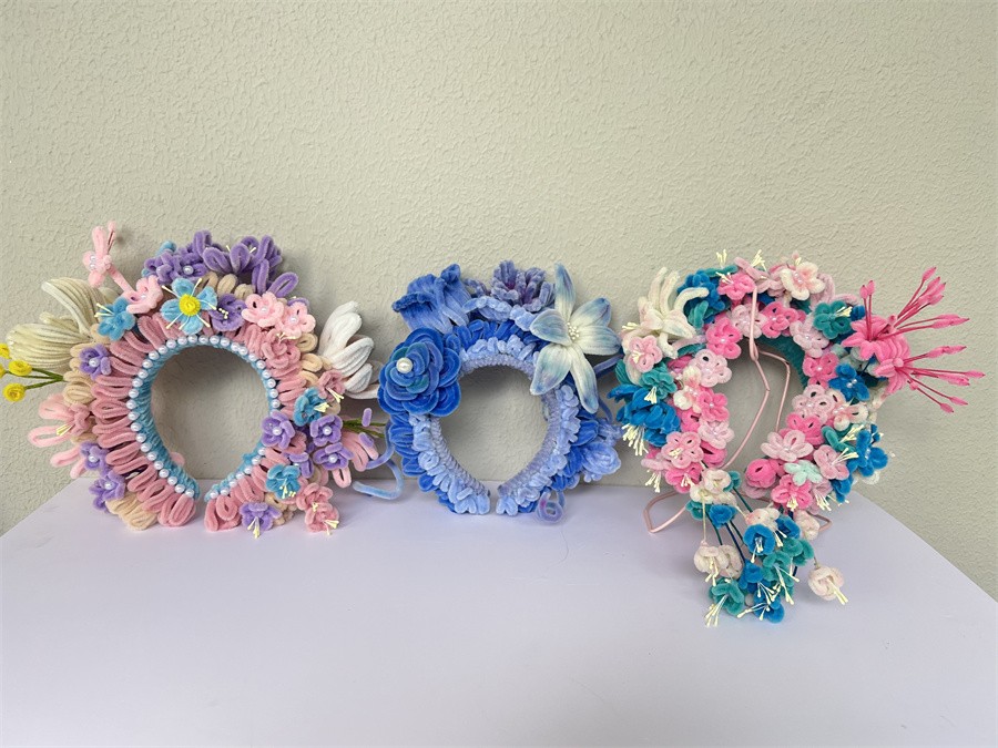 扭扭棒簪花制作在保留簪花传统文化的同时,打破传统簪花制作对鲜花材料和技艺要求较高的局限,学生用扭扭棒对簪花的色彩与造型进行创新设计,融入现代时尚元素,让古老的簪花焕发出时尚活力。