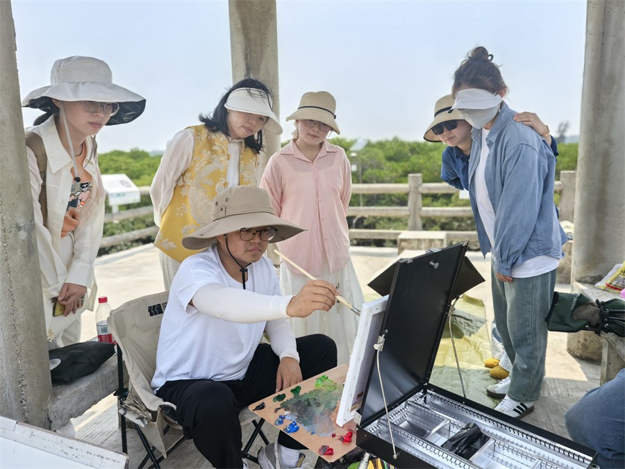 动画与传媒学院师生还认真学习了习近平总书记2017年在北海金海湾红树林生态保护区考察时的重要讲话精神。师生也积极用画笔描绘红树林,以实际行动践行习近平生态文明思想,大家也将会继续用艺术之笔、以青春之志赋能美丽中国新征程,携手绘就美丽中国新画卷。