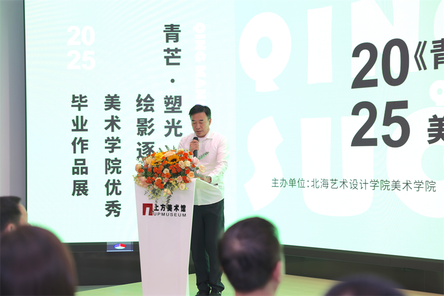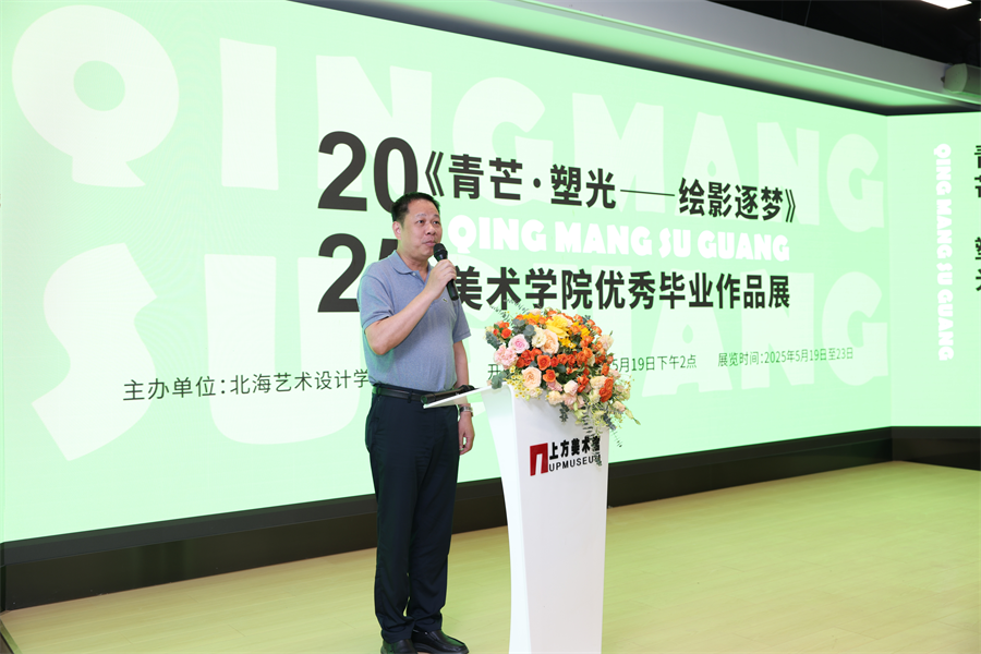 学校党委书记覃宪儒宣布“青芒·塑光——绘影逐梦”北海艺术设计学院美术学院2025优秀毕业作品展正式开幕