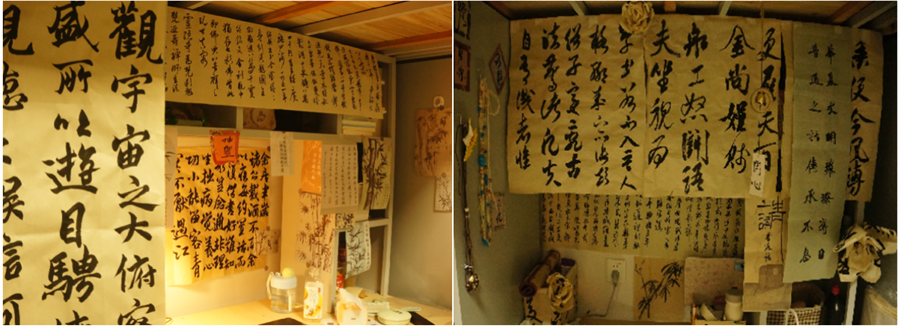 在汇报环节,各学生宿舍代表围绕“推普+书法”主题,分享了宿舍装饰理念、作品内涵与推普感悟。活动现场亮点纷呈,或开辟“推普书法角”,悬挂集体创作的软笔作品;或张贴手写易错字表,以朱笔标出重点;或以古朴典雅的字迹书写标语装饰门楣;或在墙面穿插推普知识卡片,将宿舍变为“规范字小课堂”。作品设计既展现了学生的专业功底,更将推普理念融入日常生活。