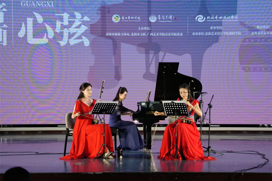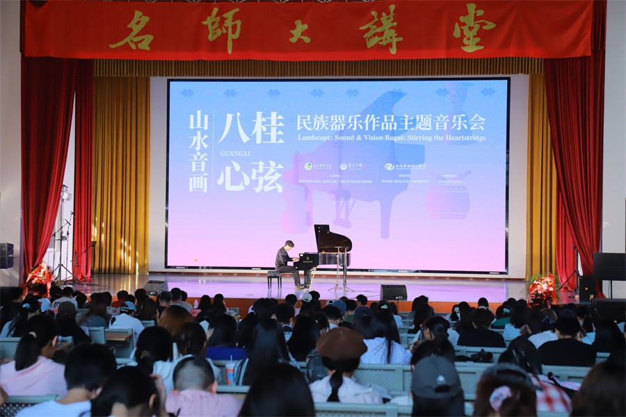 由北海市旅游文体局、北海市文联、广西艺术学院音乐学院党委主办,北海艺术设计学院舞蹈学院承办的 “山水音画・八桂心弦・民族器乐作品主题音乐会”,在我校西校区大礼堂精彩上演。来自广西艺术学院音乐学院的师生代表演奏团,为现场师生及观众呈现了一场兼具思想深度与艺术感染力的视听盛宴,以专业实践助力中华民族共同体意识培育。